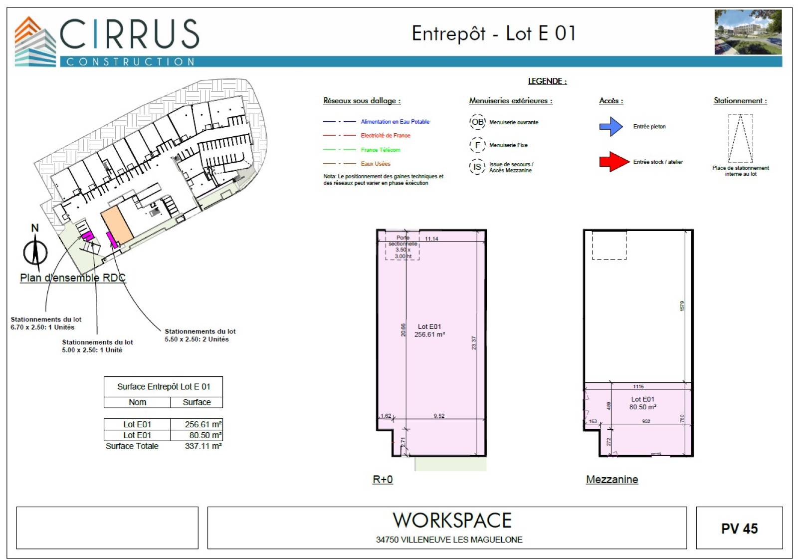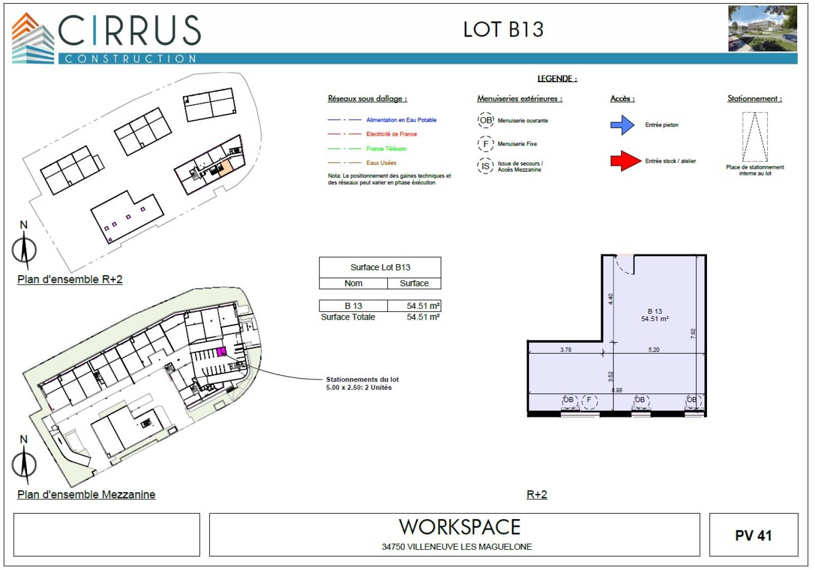 Situé à Villeneuve-lès-Maguelone - Z.A.C. Charles Martel, le programme est composé de quatre volumes : un bâtiment de locaux d’activité sur deux niveaux, un bâtiment de bureaux en R+2, un parking semi enterré et sécurisé sur 2 niveaux et un bâtiment entrepôt indépendant des autres bâtiments.