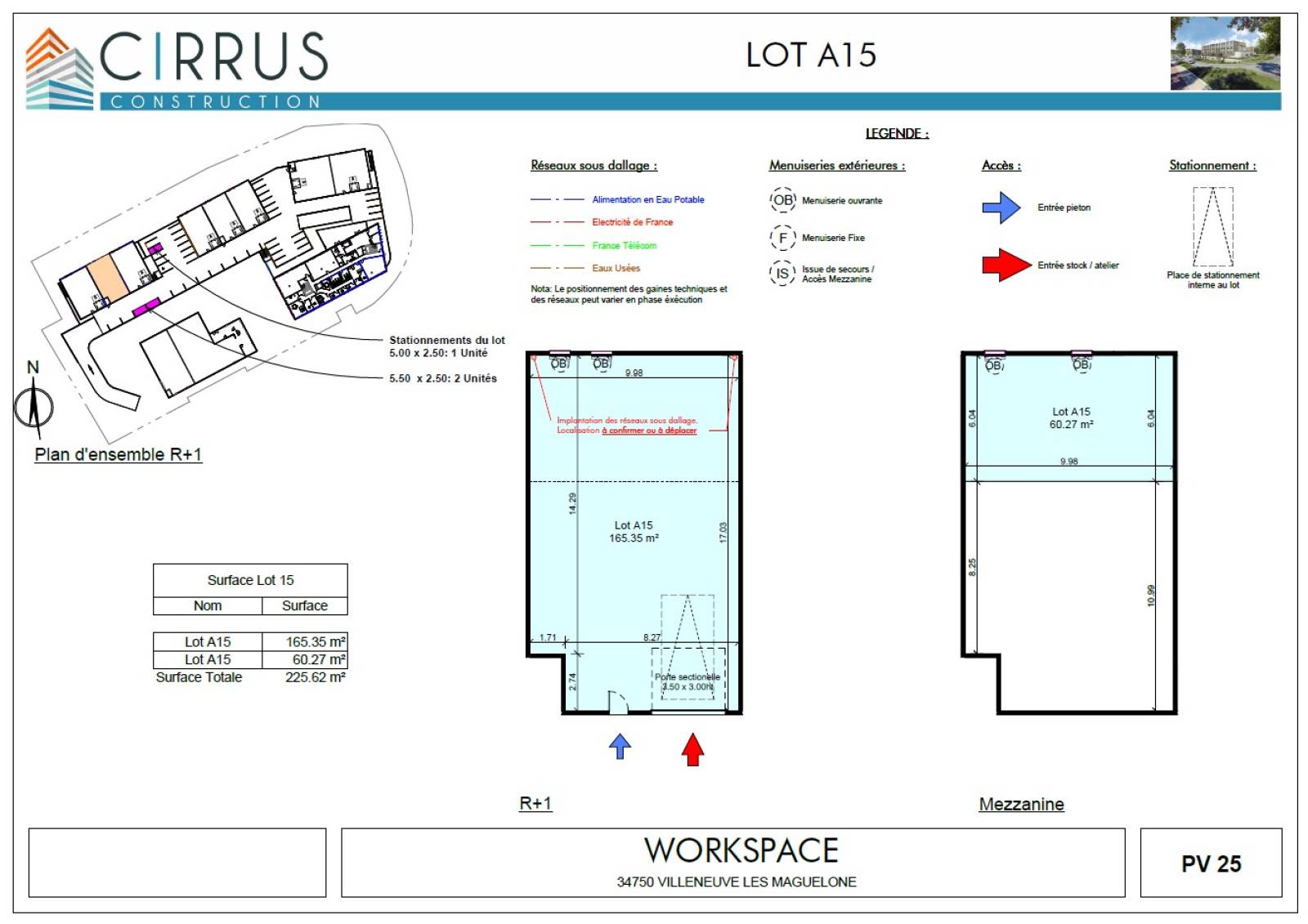 Situé à Villeneuve-lès-Maguelone - Z.A.C. Charles Martel, le programme est composé de quatre volumes : un bâtiment de locaux d’activité sur deux niveaux, un bâtiment de bureaux en R+2, un parking semi enterré et sécurisé sur 2 niveaux et un bâtiment entrepôt indépendant des autres bâtiments.